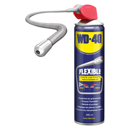L'Aérosol Multifonctions flexible WD40 permet de protéger le métal de la corrosion, tout en repoussant l’humidité et en lubrifiant. Ce produit multifonction vous permettra également d'éliminer la graisse, la saleté des surfaces. Grâce à son tube flexible de 18 cm pliable il peut atteindre des zones difficiles d'accès. Sa seconde position" tube abaissé" permet une pulvérisation plus large.